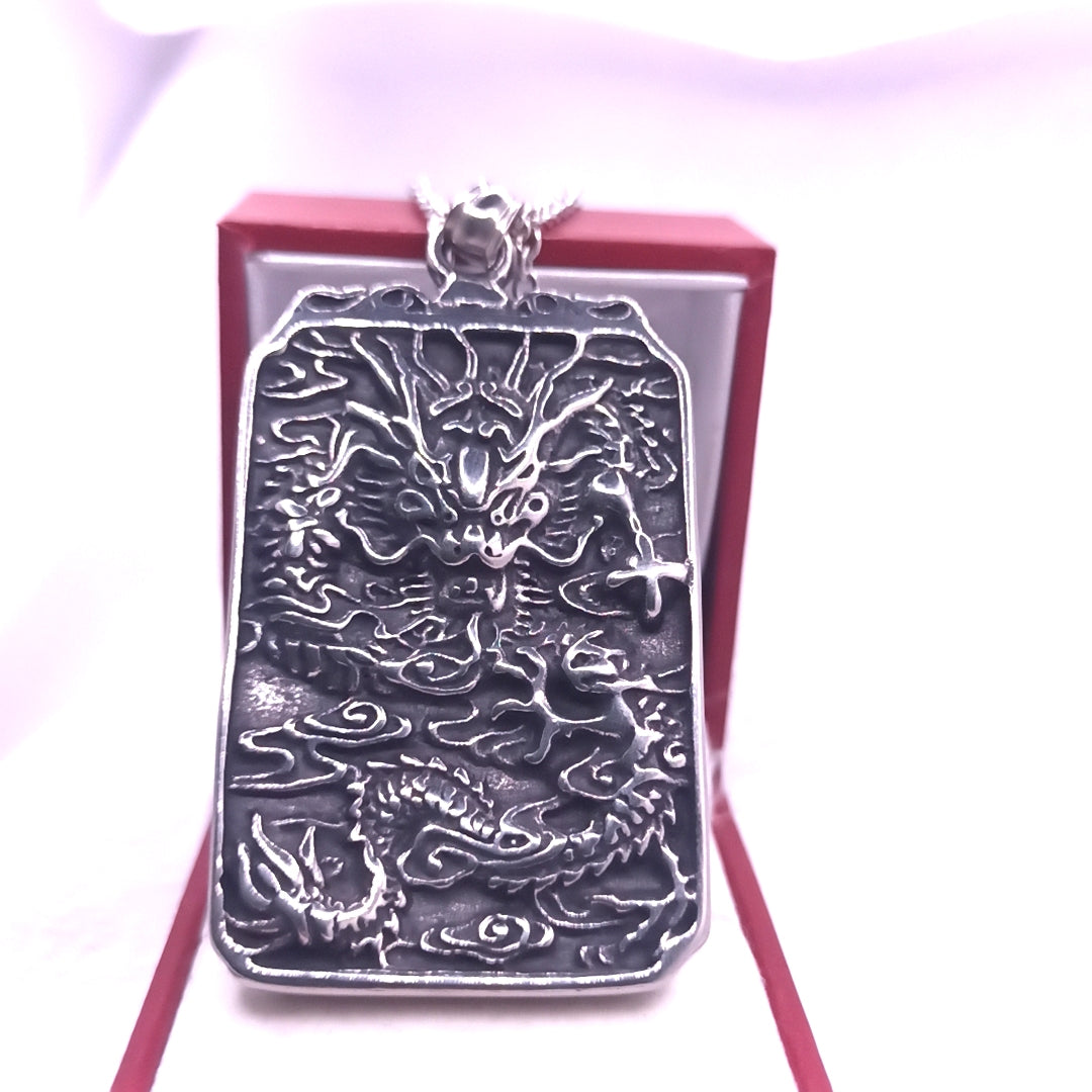 Descubre el poder y la elegancia con nuestra cadena de acero inoxidable y dije de dragón chino. Un símbolo de fortaleza y buena 🍀🐉✨